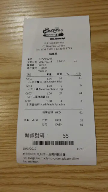 中午還在鴨脷洲海怡半島麵包店買麵包,然後準備在戲院買票看電影。可惜場次時間太晚,為免逗留在海怡半島太久,索性坐地鐵回到牛頭角淘大。反正海怡半島跟淘大影藝票價幾乎一模一樣,如果同一套電影在牛頭角淘大跟海怡半島都有上映的話,回到牛頭角看電影我也沒所謂。都不知道為什麼,我抱着少食多餐的心態,中午在西貢吃了一碟少量雞飯,再在鴨脷洲又犯了口癮,吃了兩個鹹味麵包加一杯凍奶茶。到了差不多晚上時間回到牛頭角淘大,在晚飯開始前先看電影,再在附近買個麵包再填飽肚子。結果淘大「大X樂」對面,找到一間賣熱狗的快餐店「Hotdog Formula」。「Hotdog Firmula」令我想起淘大以前有間賣美式潛艇三文治的快餐店「Subway」,怎料現在已經失蹤了,到底是結業了還是搬走了?怎麼開飯網完全沒有「Subway」在淘大的記錄和食評?講起「Subway」其實我挺氣憤的,以前我還在沙田上班前,總會在西貢分店買個潛艇三文治再上車。現在西貢分店又結業了,牛頭角分店亦消失了,現在我想吃潛艇三文治變得越來越困難。潛艇三文治現在吃不到,暫時只能借美式熱狗三文治作替代品。「Hotdog Formula」的下午茶餐,價錢勉強算是合理,不算昂貴。選美式熱狗下午茶餐連飲品的話,收費大約三十餘至三十多塊左右。當然,「Hotdog Formula」下午茶餐不只得有熱狗,還有多士、意粉、薯條、雞翼或雞塊可以選擇。跟「Subway」最不同的地方,是「Hotdog Formula」是不單只有美式熱狗外賣,店內還有座位提供堂食。所以點意粉下午茶餐,又還有時間留低享用,放鬆身心的話,「Hotdog Formula」的堂食座位是一個不錯的選擇。「HotDog Formula」源用以開放式廚房,製造熱狗跟其他食品。如果你坐在廚房旁邊的座位,不太張揚的話,要偷看廚房的人製作食物過程絕對不成問題。受近年大熱的韓國食品潮流所影響,很多餐廳都喜歡甚麼食物也加上芝士作配料,熱狗本身就屬於可以加上芝士作配料的食物,所以看到濃味的芝士熱狗,並非甚麼荒天下之大謬的事。一隻「芝士熱狗」賣$32,如果熱狗用料屬於真材實料的話,並不至於太昂貴的價錢,至於芝士熱狗是否抵食,就要視乎試食試到的味道和效果。我的「芝士熱狗套餐」,芝士熱狗配凍朱古力飲品一杯,另加港幣六元正。芝士熱狗的芝士醬汁,於我而言,已經很多很多,真的很邪惡。不過芝士醬汁於我而言,絕對是「韓信點兵,多多益善」,再給我多點芝士醬汁我也沒有問題,沒有異議。凍朱古力飲品用了不少朱古力,味道很濃很甜,飲品亦有一定數量冰塊,所以朱古力飲品肯定能保持理想冷凍温度,凍朱古力飲品變得凍、濃、甜三者兼備。說回套餐的主角「芝士熱狗」,熱狗維持温度在微熱至中熱之間,熱狗雖然不算辣手,但是仍能令芝士不會過早冷卻,沒跟熱狗腸分離解體。「芝士熱狗」本身的芝士味道頗濃,正合我的口味,熱狗腸雖然已經開始轉涼,不過有濃厚偏熱的芝士醬汁搭救下,熱狗腸的問題最後得以解決,沾上芝士醬的熱狗腸口感還是很脆,很香濃可口。其實「Hotdog Formula」熱狗的味道其實還可以的,當然價錢再平點可能更好,不過在淘大花園營業,不收這個程度價錢的話,恐怕不容易賺錢啊。…查看更多