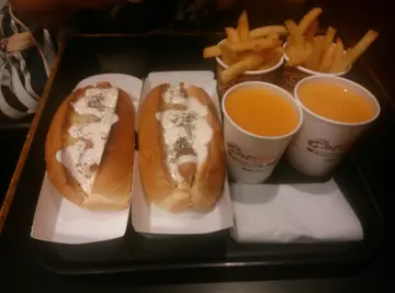 與朋友睇完戲,又點餓。 便想找一些宵夜吃。在戲院往前行二十多步,便找到這間專食熱狗的店。我們與友人便一起進去。 舖位比較少,但是也不多人,所以可以不用等位,便可直接內進。它的熱狗有很多款式,而每一款也好像很吸引。熱狗來到了,十分多醬汁,賣相也十分好。 我們很快便品嚐了他。 若果熱狗能夠增加更多餡料,必定會更好吃、更有口感,吃落更有層次感!薯條新鮮, 不會放到出曬油,變了泥黃色的樣子。味道不錯。而職員態度ok,可以接受 :) …查看更多