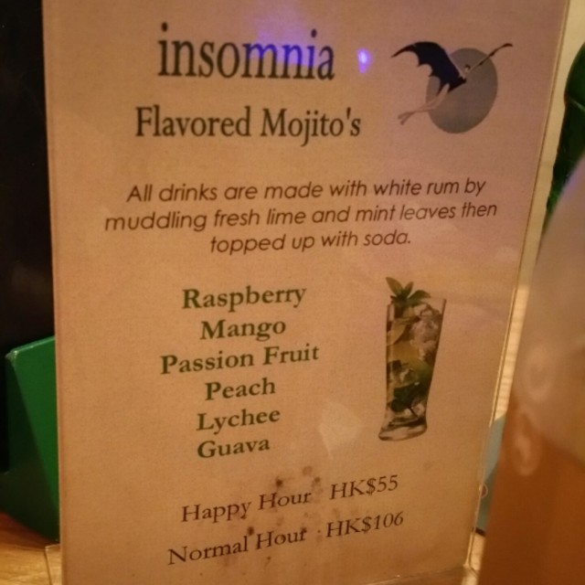 Insomnia是一個地方讓大家釋放內在1990的搖滾樂。擁有蘭桂坊最流行舞場的Insomnia匯集一些厭倦了所有的保守場地,有著裝要求和只想玩樂消閒的俱樂部愛好者。每晚都有現場樂隊表演。