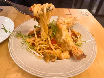 之前都黎過呢間I’a Land cafe 食過下午茶!覺得食物質素唔錯,所以今次黎睇睇個晚餐如何我地2個人叫咗2個dinner sets 先黎餐湯2碗 今日係甘筍忌廉湯 味道正常 但我欣賞佢每人有兩塊蒜蓉包比我地食 而且焗得都夠脆我個人比較鐘意包點湯食我叫咗燒美國頂級肉眼扒伴香煎鵝肝扒係較薄,但都幾大塊!都咗5成熟,都煎得唔錯佢嘅拌碟有紫薯 都幾特別,唔多餐廳有。而且都算幾健康因為菜嘅份量都多 而鵝肝部份,雖然未做到外脆內軟!但味道都還可以因為有少少 調味所以唔會有羶味呢個係朋友叫嘅 酥炸大蝦配茄茸汁扁意粉賣相唔錯,意粉軟硬適中!隻蝦味道唔係太夠但如果配合意粉食就可以最後包2杯 餐飲個人覺得工廈黎講 呢間性價比算高 所以可以推一推I’s Land Cafe…查看更多