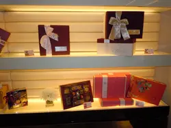 貨架上不同大小及包裝的精美禮盒