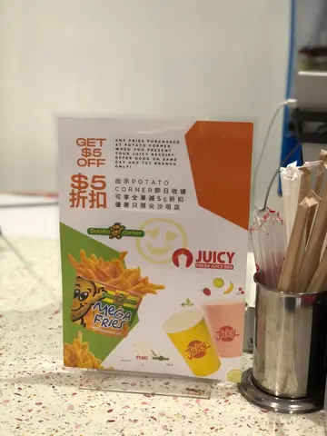 ( ͒ ́ඉ .̫ ඉ ̀ ͒)̥JUICY Fresh Juice Bar #尖沙咀•尖沙咀有好多茶飲店,小妹今次就講吓係K11 Art Mall對面嘅韓國過江龍啦!同一條街都有幾間類似嘅店,不過呢間最近商場,小妹竄出嚟拿拿臨買完就匿返入商場嘆冷氣了~(๑•̀ㅂ•́)و✧•🥤《香蕉奶昔》($32)小妹真係好中意香蕉類產品,又可以幫助便便,所以今次都唔例外,行行吓街熱辣辣即刻啪返杯,但小妹今次失望了(இдஇ; )杯野飲勁水完全冇奶昔種creamy的感覺,好明顯係溝咗好多水溝到稀曬(੭ ˃̣̣̥ ω˂̣̣̥)੭ु⁾⁾!不過小妹又唔會一碌9打一船人,呢間舖仲有好多特色野飲,下次會試吓其他出名啲嘅!•呢間舖係韓國過江龍,中環都有分店,有賣小食同主打鮮果汁,不過小妹覺得要改吓服務態度先,唔知係咪小妹個氣場太大震懾到個店員,令佢緊張到面無表情又串串貢咁,小妹以後會收斂吓了⁄(⁄ ⁄ ⁄ω⁄ ⁄ ⁄)⁄•٩(ˊᗜˋ*)و✧*。📍JUICY Fresh Juice Bar (尖沙咀)尖沙咀加拿分道8-12號嘉芬大廈地下A1號舖•💰人均消費:>$50…查看更多