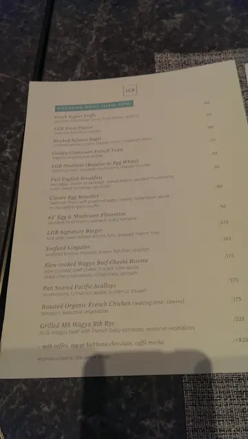 當日跟朋友去食午餐,因為之前食過覺得還好,於是便再去一次,這次令我覺得非常地不愉快。下午一時十五分左右,我看到這餐廳已很多人,不過鑑於沒有人排隊,所以心諗可能還有位置,當時在外面,即商場開放位置的桌子已很多人,不過我看到有一個空位置,就是位於大柱的後面。我們看到該位置就揮手向一位女服務員示意,打算坐下,該女服務員看到該位置就說這位置挻擁擠,可以進入餐廳室內的位置,較寬敞,我們聽到都覺得提議不錯,再者,裏面只坐了兩台客, 而且梳化位又會再舒服d, 點知。。。當女服務員帶我們進去坐時就給另一男服務員攔截,該男服務員像是印巴籍人,對女服務員說英文,大約意思係“ 淨飲野嘅客,唔食午餐嘅唔準坐入面。 ”個女服務員都呆左一下,似係唔知點解個男服務員咁講,當時我好嬲,就即同佢講我地係黎食午餐,唔係只飲野,之後佢先至放行,事後個女服務員對我地講唔好意思,我地問個男服務員係咪新黎,佢話係,但職位係super, 我地聽完就覺得間野嘅老闆唔識請人,室內室外都一樣價錢,點解咁樣分別,都唔知係間野嘅政策定點, 仲有個男服務員好似個大佬咁企係counter前唔郁,要揮幾次手至肯過黎take order, 食到我地背脊骨落,無心情影佢地嘅食物,同埋比之前差好多,以後都唔會再去食囉!食左佢個signature buger, 7成熟都唔錯, 我朋友就食左佢個seafood lingunie, 碟大份量少,果個價真係貨不對版。食完午餐就食飯後甜品,chocolate hazelnut好好味,好濃郁嘅朱古力味,終於慰藉下我受傷嘅心,再見,LGB, 無下次了。