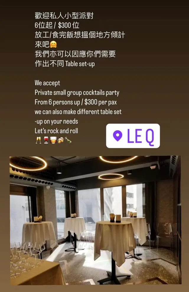 Le q Cafe & Bar (中環) 網址: https://s.openrice.com/QrbS0Cea800 地址: 香港中環皇后大道中129號地舖 電話: +852 21104668