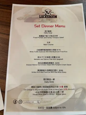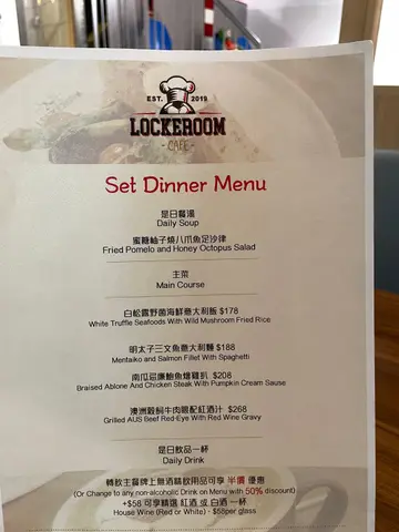 Lockeroom Cafe餐廳位於方便嘅商場,佐敦站一出就到。足球主題嘅環境,真球迷應該會enjoy,但本人就唔係球迷,不過個裝修都十分適合打卡。傳統安格斯牛肉漢堡-竹炭漢堡飽漢堡配粗薯條,漢堡有生菜、蕃茄、芝士,主角當然係厚厚嘅牛肉漢堡扒,有質感富口感,唔錯。鮮番茄藍蟹肉海鮮長通粉肉眼可見嘅蟹肉,長通粉就正常發揮,冇乜太大招點。有餐湯,係普通嘅粟米湯。飲品order 左芒果沙冰同柚子薄荷梳打,都幾清新。其實間中會路過呢個商場,不過餐廳係地庫位,好少注意到,人流亦唔算好多。店員服務態度好好👍🏻 ,食物質素係正常,如果以近遊客區嚟講,性價比都算唔錯,坐得幾舒服,係一間值得一試,打打卡嘅餐廳🍴😂…查看更多