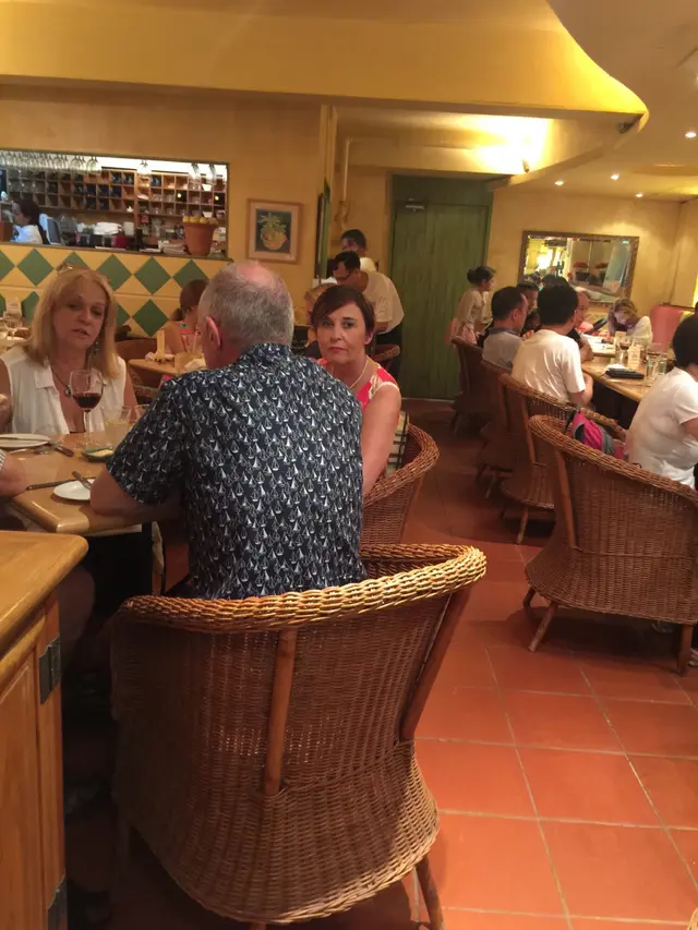 假日同肥髀在赤柱閒逛,呢間西餐廳地點唔顯腿,一向都想試,今日去到門口,見啲食物ok,又有兒童餐,入去已經爆場,8成係外國人!地方細,樓底唔高,桌椅幾迫,所以幾嘈雜,歐式裝修,花布梳化籐椅,昏黃燈光,偏向悠閒感覺,店員叫我等一下,5分鐘後比到靠牆2人枱我,先上杯有檸檬味嘅凍水!食物要耐心等待!麵包:用中式竹籠上,兩件白法包,兩件麥法包,外脆內軟!好味!店員仲問使唔使添加!墨西哥南瓜蘑菇山羊芝士香腸薄餅($120)賣相幾靚,薄餅乾身有咬口,中間嘅餡料切得大塊,南瓜香甜有咬口,蘑菇爽口,香腸片濃味比較韌!有𡁻口!好似食豬肉乾,羊奶芝士比較濃味!撈咗微辣嘅調味料!惹味!拌碟油醋汁沙律酸酸的開胃!兒童餐火腿奄列加薯條($55)奄列賣相好差,燶晒又唔係半月形,岩岩參參咁,入面完全無蛋汁,蛋有燶味,入面火腿好乾,唔合格!薯條新鮮炸起好熱,外脆內軟,粗身薯味濃好味!濃朱古力蛋糕配呍呢嗱雪榚($60)朱古力蛋榚好濃,帶甘味,呍呢嗱雪榚有呍呢嗱籽,好香滑,好濃牛奶味凍檸茶($29)茶底唔濃,味道清爽!最緊要夠凍咖啡($32)House Coffee,味道好濃,熱氣一谷出來,咖啡味好濃!配埋有兩塊小曲奇,鬆脆兼牛油味幾香,好味!店員好忙,有禮有笑容,尤其一個四眼肥叔叔!出入都會同客人打招呼!加一$325.6廚房嘅奄列要改善!…查看更多