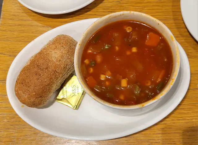 Went to this M&S Cafe in Cityplaza with my sis for afternoon tea. .I ordered Scone with Jam & Clotted Cream. The scone was buttery and had mildly sweet taste when paired with the clotted cream. Its moisture level was just right. It was slightly cold when it was served though. My sis ordered Cream of Mushroom. The soup was creamy and filled with plenty of mushrooms. Dipping the bread into the soup made them more appetising to have. .The cafe was spacious with comfortable seating, making it a pleasant place to stay for an extended period as it was not crowded. After placing your order at the counter, the staff would deliver it to your table.…查看更多
