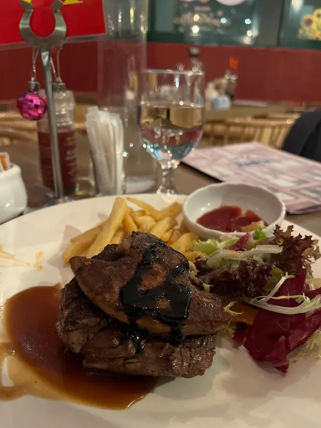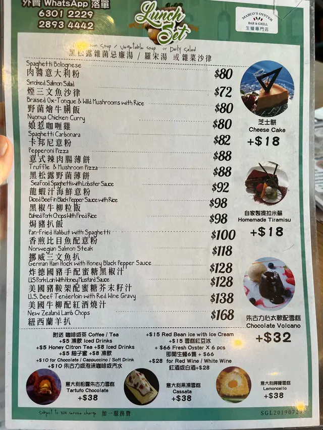 整體來說:老餅慶生一流,自彈結他老歌手伴唱,當切蛋糕時,還會過來彈奏,免開瓶,由於食店有自家製蛋糕,所以如果自帶蛋糕會收$50,點食店的自家製蛋糕,有質素,如冇要求者,建議不用買蛋糕,因為點整個Cake都只是$168。服務員態度和藹親切,詢問之下,十幾年前都是他們,絕對親民,一讚。懷舊西餐,值得支持。