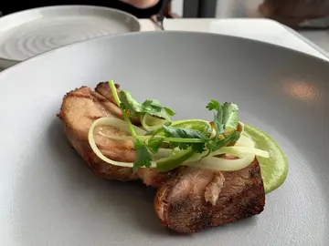 要搵間就腳又景觀靚又好食既餐廳,最後見有地獄廚神加持就選擇咗呢間餐廳慶祝周年紀念😊特登平日lunch食,無咁多人仲有lunch set $288(3 courses)首先有麵包🥯,個醬收左在個筒入面又幾得意喎。呢個味好似韓式辣雞粒用菠蘿蓉🍍。估佢唔到又出奇地夾。但個雞真係有啲辣。呢個吞拿魚他他配脆炸蓮藕片都好好味,so fresh!蓮藕片冇咩味,配埋吞拿魚一齊食就啱。特登加咗錢食佢出名嘅威靈頓牛柳,酥皮係脆,中間有好多嘅蘑菇蓉,牛柳肉質好淋。不過件牛唔熱,只係暖暖地。薯蓉都好好味,好creamy!呢個豬對唔住講一聲真係好似港式燒肉。仲要勁乾同「鞋」。呢個lemon cheesecake 好軟身,味道okCappuccino 正常最後就係想講疫情期間去食,入面唔係個個侍應都有戴口罩😷。同埋當中有漏單嘅情況出現😅…查看更多