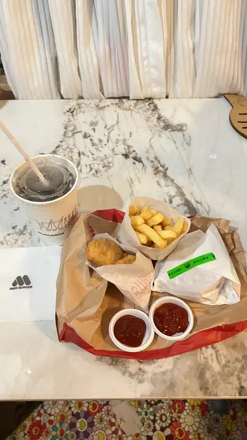 Mos Burger 係我心目中係高級版嘅汉堡快餐店,各樣嘢都好食過麥XX。拍得住Cafe嘅質素!今日又試咗佢嘅素食burger , 金平牛蒡珍珠堡。佢係用飯代替汉堡嘅包。啲飯粒又好實正,唔會散收收。中間嘅餡牛蒡同紅蘿蔔。炒香左牛蒡同紅蘿蔔。啲飯粒吸收左啲菜汁,令到啲飯更加香。呢個配搭真系好夾,又好特別。加21蚊就有細薯條同杯熱飲。熱飲我就揀左齋啡,齋啡不過不失。當然價錢已經反映咗一切。佢嘅粗薯條真係幾唔錯,又唔會炸得太乾又固唔太淋,幾乎必叫之選!…查看更多