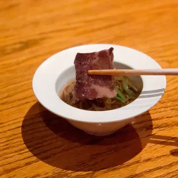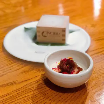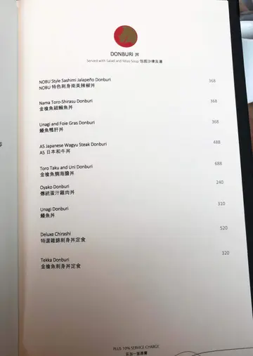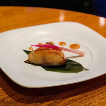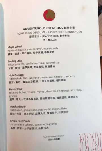 不久前在 社交平台廣告中看見這間餐廳,食物賣相相當精緻吸引,便相約朋友一同前往,我們比訂位的時間早了半小時入座。入內可見酒吧門口放有許多酒桶的擺設,客廳富麗堂皇,餐廳盡是落地大玻璃,我們觀賞了幻彩詠香江,進食期間亦可飽覽維港夜景美色。日本純菜配帆立貝魚子醬湯底色澤清澈,味道清淡健康,帆立貝肉質彈牙,口感厚實,鮮甜嫩滑,魚子醬圓潤飽滿,咸香鮮甜。鰆魚刺身配香辣味噌鰆魚是一種上等的白肉魚類,師傅選用最新鮮的部份用作製成魚生片,鰆魚刺身肉質柔軟,味道清淡,使用辣味噌作調味,為清淡的鰆魚帶出一點鹹味。深海池魚刺身配紫蘇莎莎深海池魚肉質細緻鮮美,清甜爽滑,師傅選用厚切的方法,對體型肥美的深海池魚最適合不過,沾上紫蘇莎莎,更帶出鮮味,層次豐富。秘魯風味牡丹蝦刺身牡丹蝦刺身口感爽口彈牙,味道甘甜濃郁,鮮嫩脆彈,使用秘魯風味製作牡丹蝦,開胃惹味,鮮味十足。特上拖羅壽司選用吞拿魚中間的魚腩位置,色澤鮮紅帶油光,口感軟滑,魚味極濃,油香味重,配上白飯正中和油脂。帆立貝壽司帆立貝只加上少許醬油點綴,沒有額外的調味,務求食出原汁原味,口感飽滿豐厚,質感爽脆,味道鮮甜濃郁。鯖魚壽司鯖魚脂肪鮮甜,肉質豐美,味道油鮮甘美,配上醋飯的緊實與黏合口感,層次豐富,鮮味十足。 海膽壽司色澤呈現橙黃色的海膽,味道甘甜,質感細膩,柔軟鮮美,入口近乎即溶,配上醋飯,味道更覺鮮甜香濃。茶碗蒸茶碗蒸頂部放上菇類及蟹肉作點綴,精緻美觀,口感嫩滑,可惜蛋香味不够濃郁,內裏的海鮮鮮甜不夠突出。爐燒A5 級日本和牛 配胡麻醋醬汁選用日本最頂級的牛肉A5和牛燒製,口感鬆化軟腍,入口即化,幾乎不經咀嚼就可以平順的滑進喉頭,而且油份滿佈口腔,配上胡麻醋醬汁進食,正好緩和油膩感。爐燒智利鱸魚伴野菜鱸魚是生長在極深海底的魚類,把它燒至色澤金黃,可見油份滿佈表面,入口肉嫩鮮美,油脂豐厚,口感近乎即溶,放置少量野菜伴碟,高貴精緻。野菜稻庭湯烏冬湯底味道淡口,野菜量眾多,幾乎覆蓋整個烏冬,入口鮮嫩軟腍,稻庭烏冬呈扁長形,口感幼滑細膩,整體清淡健康。烤三文魚柳配日式燒汁烤製的三文魚柳味道香濃,肉質緊緻鮮嫩,肉汁仍保留於三文魚中,再配上簡單的日式燒汁作調味,可帶出三文魚的天然魚油香。烤美國牛肉配南美辣醬烤製的美國牛肉色澤仍呈現少許粉嫩,不會過於熟透,入口肉味濃郁,鮮嫩多汁,沾上附有的南美辣醬,辣辣的味道使口感更為豐富,惹味香口。凍威士忌咖啡杯冷凍的威士忌會使酒精的刺激度降低,口感濃稠滑順,配上淡淡的咖啡香,入口味香濃郁,緩和油膩。Champagne 95是用香檳、橙酒、蜜桃甜酒和菠蘿果蓉調製而成,口感飽滿厚實,味道清新柔滑,尾韻細長,容易飲用。整體而言,環境高貴優雅,食物質素尚算可以,但份量細小不夠充足。因為早了半小時入座,員工人手不足,早段被忽視冷待的時間略多了。