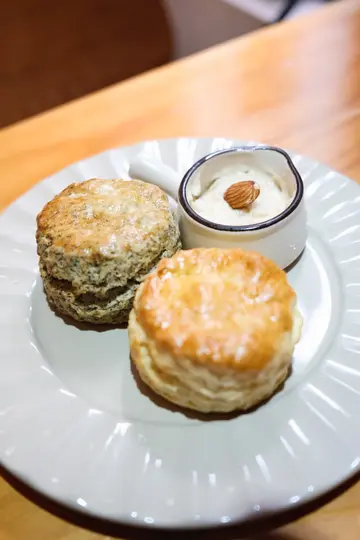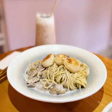 最近食咗呢間評分好高既cafe我已經短時間內第二次覆桌🤩英式鬆餅配玫瑰蜂蜜堅果醬 $58我揀左川寧伯爵茶同宇治抹茶配朱古力粒鬆脆的鬆餅帶著牛油香,再配上自家製玫瑰蜂蜜堅果醬🍯幾特別又唔會太乾💯🌈彩虹乳酪 $98有奇異果🫒蜜柑、香蕉🍌藍莓🫐同埋石榴個乳酪係用蝶豆花整既淺藍色🩵成個顏色配搭好靚 好似個沙灘咁🏖️啲水果都好新鮮 做前菜唔錯 幾開胃😋🍝帶子黑松露蘑菇意粉 $138黑松露味香濃,帶子大大粒,煎得微微焦香磨菇、洋蔥配埋忌廉汁,令意粉更香更好味👍🏻🍹Passion Fruit Soda $58健康嘅熱情果,口感清新,唔會太甜啱晒夏天嘅天氣飲💛花生醬煉奶牛角包窩夫配雪糕 $78牛角包窩夫加上大量花生醬同煉奶伴球曲奇忌廉雪糕同忌廉,加上藍莓同士多啤梨😈好邪惡好好味🤤🤤🤤…查看更多