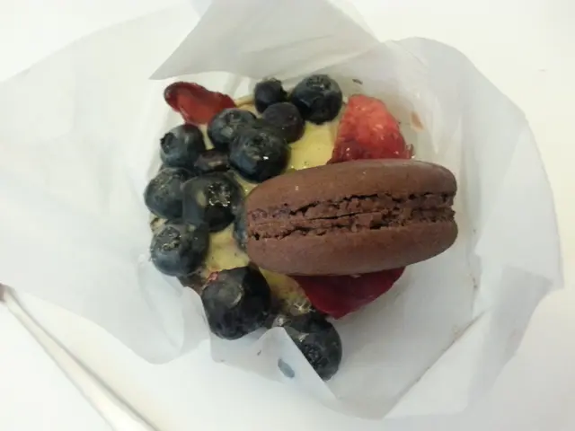吃過一頓飽飽的,又想食點甜甜的,附近又沒有什麼好甜點店,所以走了去老佛爺買點甜的跟家人分食~也許是太夜了,糕點的款式只剩下很少選擇,但也選了三件回家~Cherry & pistachio cheesecake ($45) 面層是甜美帶酸的櫻桃醬,下面是軟滑的芝士蛋糕,夾雜著開心果蛋糕、櫻桃果醬及鬆脆餅底,整個組合很和諧美味~Coconut mango cake ($45) 是清新的選擇~ 面層是酸酸甜甜的芒果醬,底下是綿滑的芝士蛋糕,加上香氣十足的椰絲、芒果果醬及海綿蛋糕,是個很亞熱帶風情的蛋糕~不過其實兩件蛋糕的組合跟層次都很相似,只是味道不一樣而已,獨立食是不錯的,但未免有點單調乏味...不說也知,小妹是為了小杯子才買Chocolate mousse ($45)的啦~ 慕絲朱古力味濃郁,質感綿密細膩,做得不錯,但略嫌缺乏層次,多吃兩口會很膩...雖然老佛爺的蛋糕已沒有了以前的驚艷,但水準平穩的它,不失為飯後一點甜的好選擇呀!!…查看更多