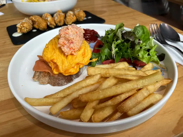 煙三文魚、龍蝦沙律、水煮蛋、酸種包拌薯條