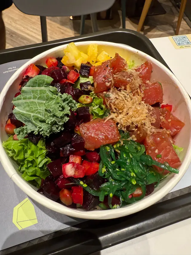 每次同朋友喺荃灣做完gym後唔知食乜好,去會都荃新天地2期地下食poke bowl(又稱鬼佬魚生飯) 🥣 STEP1 : Protein今次我就揀咗煙燻油辣味三文魚配西班牙蒜油八爪魚STEP2: 次次都係揀Mayo蛋黃配菜,貪佢有菠蘿仔、青瓜同蟹籽。如果菠蘿可以再大粒啲就無可挑剔🤧STEP3: 黃薑椰菜花mix沙律菜😋依個配搭可以將carbs壓低啲,驚唔夠飽嘅朋友可以嗌飯/udon啊~店內有自助餐detox water 免費供應,飲少杯廢水又可以跑少兩個圈喇!…查看更多