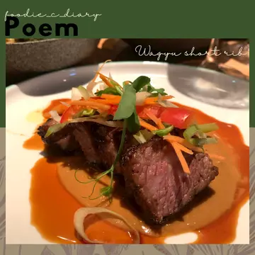 傳統峇里菜多使用油炸,使用大量香料調味,而且味道偏辣😬 但這家餐廳的新派菜式都偏健康,完全不油膩,而且改良成適合香港人的微辣口味,追求味道的平衡👍🏻 這個post會跟大家介紹它的晚餐menu~Octopus(非菜單上的菜式)峇里菜愛以海鮮入饡,這個前菜選用經辣椒烤過的八爪魚鬚,烤的時間剛剛好,有嚼口但不過硬,加上西柚粒、沙律菜、青瓜和西式油蔥,酸酸甜甜非常開胃!Gado-Gado($98)加多加多是印尼菜很常見的前菜,材料有豆角、豆卜、櫻桃蘿蔔和椰菜,傳統的魚仔乾花生醬變成腰果醬,腰果香加上微辣和微甜的味道,很有層次而且健康無負擔,令我一口接一口Short Ribs($298)這道慢煮澳洲和牛肋肉經過72小時慢煮,然後再烤焦表面,一切開是粉嫩、帶滿滿脂肪紋路的和牛肉~入口即融,蘸上腰果醬和和牛汁,有一種吃沙爹串燒的感覺~Bolu Pandan($88)結束這個晚餐的是斑蘭斑戟加上檸檬草雪糕,淋上焦糖腰果醬令整道菜生色不少🤤餐廳裝潢令人有置身峇里度假的錯覺,現時Poem因為疫情停業,希望能再次親身嚐到這家餐廳的菜式吧~…Read More