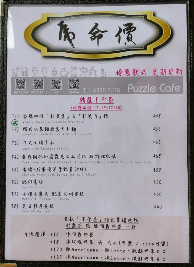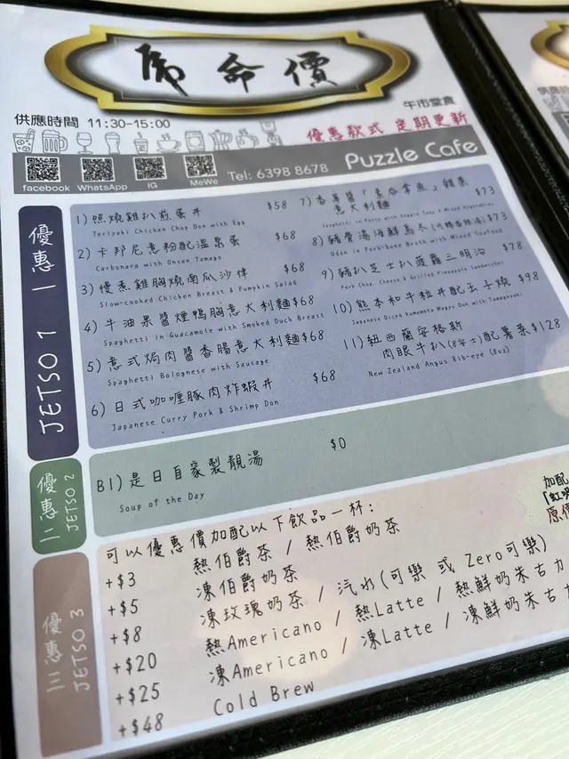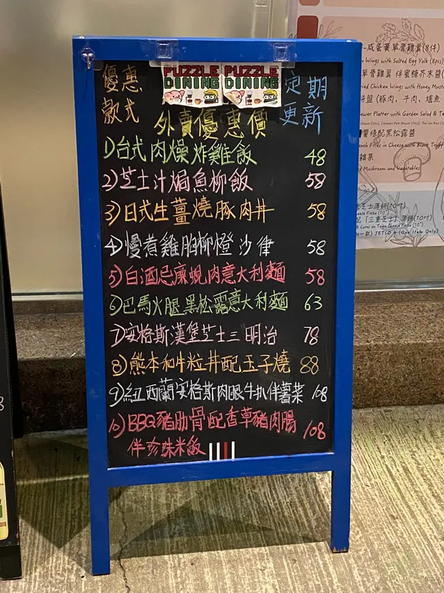 Puzzle Dining & Cafe (馬鞍山) 網址: https://s.openrice.com/QrbS0z2Y500 地址: 香港馬鞍山鞍祿街18號MOSTown新港城中心(5期)地下G30號舖 電話: +852 63988678