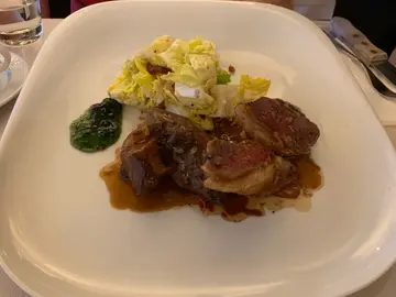 。主菜,選了鱸魚🐟和燒雞🐥。魚的味道一般,沒有太大驚喜。反而燒雞令人喜出望外,雞肉很滑嫩,而且很入味。雖然用刀叉食燒雞有點困難,但最後仍成功把🐥KO了