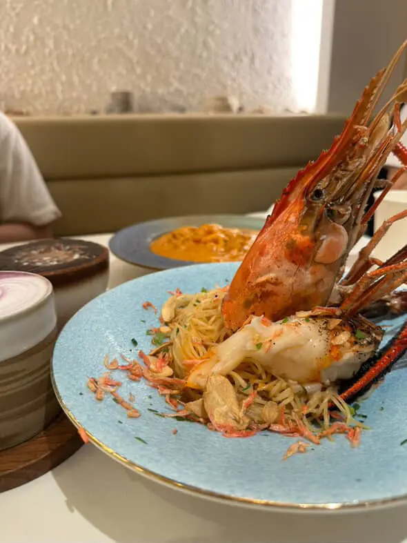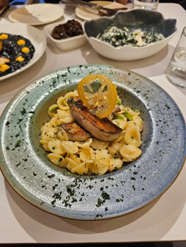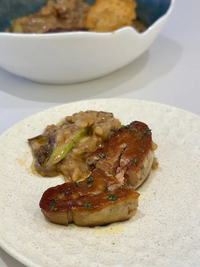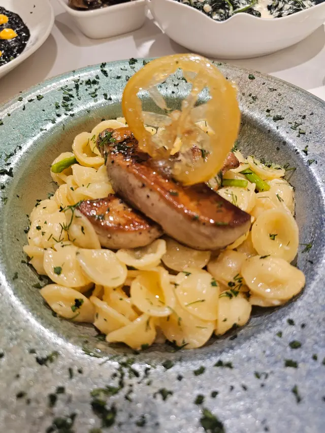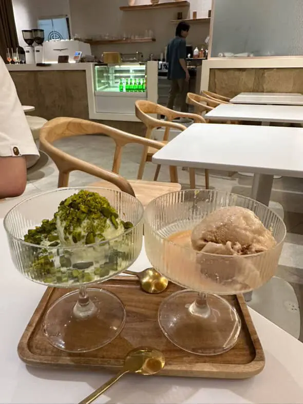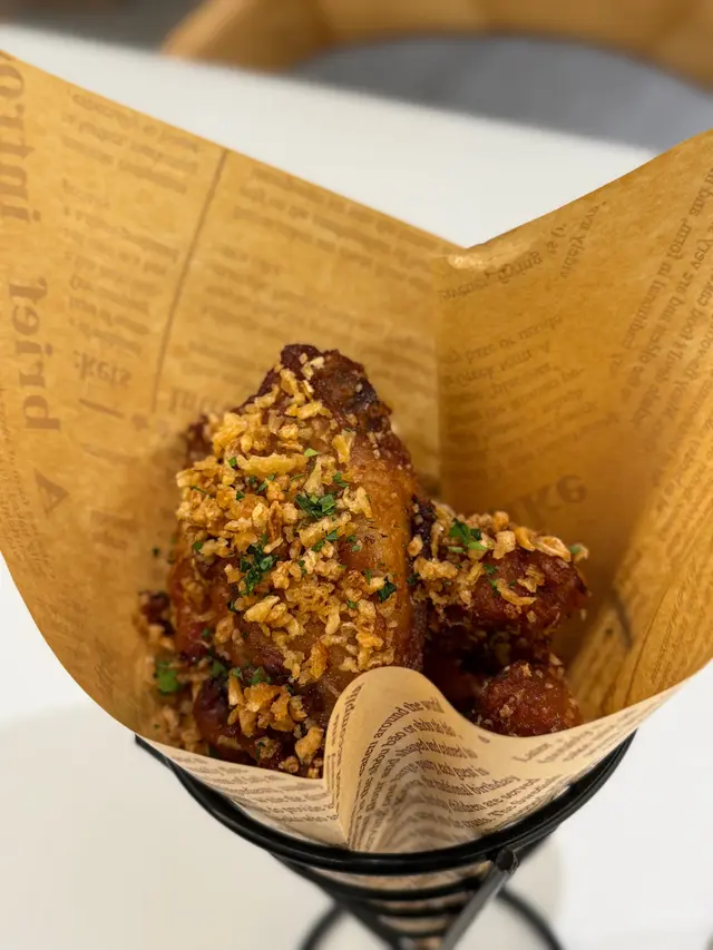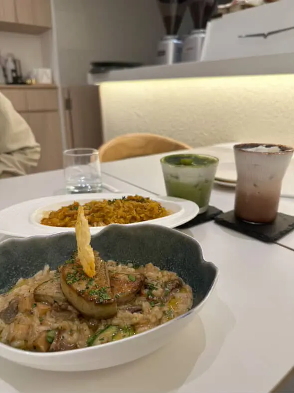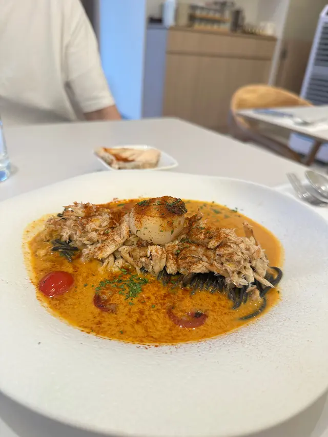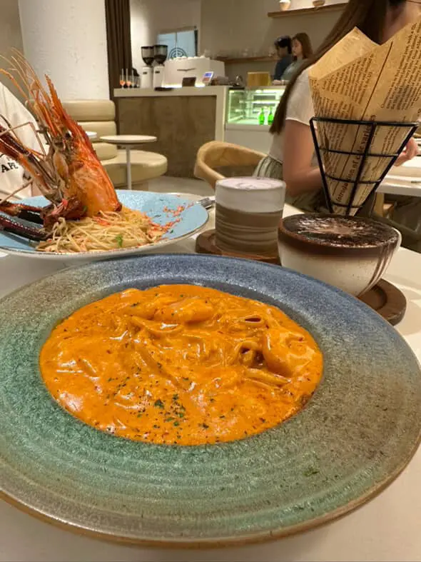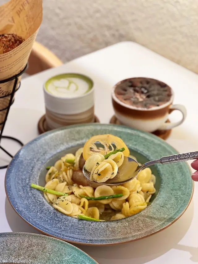 這間人氣咖啡店其中一間分店位於鰂魚涌的龍景大廈,主打精緻輕食、小食、咖啡及甜點。店內環境寬敞舒適,裝潢以日系木為主,氛圍簡約清新,適合約會或多人適會。二人套餐 - $460鵝肝鮮檸檬醬貓耳朵粉 +$20兩塊厚度十足的香煎鵝肝細膩柔滑,豐腴鮮美得入口即化,有鵝油香的濃郁氣息,貓耳朵粉煙韌有嚼勁,有少少蘆筍仔,酸甜的檸檬汁正好平衡膩感。辣芝士醬明蝦扁意粉多隻去殼鮮蝦爽滑彈牙,扁意粉煙韌富彈性好掛汁,濃稠的辣芝士醬順滑惹味。蒜香雞翼六隻肥美飽滿的炸雞中翼毫不油膩,滿佈香脆的蒜蓉粒,咬開嫩滑多汁不乾柴。開心果味雪糕 +$20/球幼滑細膩的雪糕球有濃厚的開心果味,更有開心果碎碎,堅果味十足。朱古力鮮奶 +$10香濃滑順的朱古力有醇厚的可可豆香氣,鮮奶增添順滑感,又有綿密的泡沫,再淋上朱古力醬及白朱古力碎。抹茶鮮奶 +$10轉燕麥奶 +$5優雅醇厚的宇治抹茶有幽香的茶味,滑順的燕麥奶細緻香醇。…查看更多