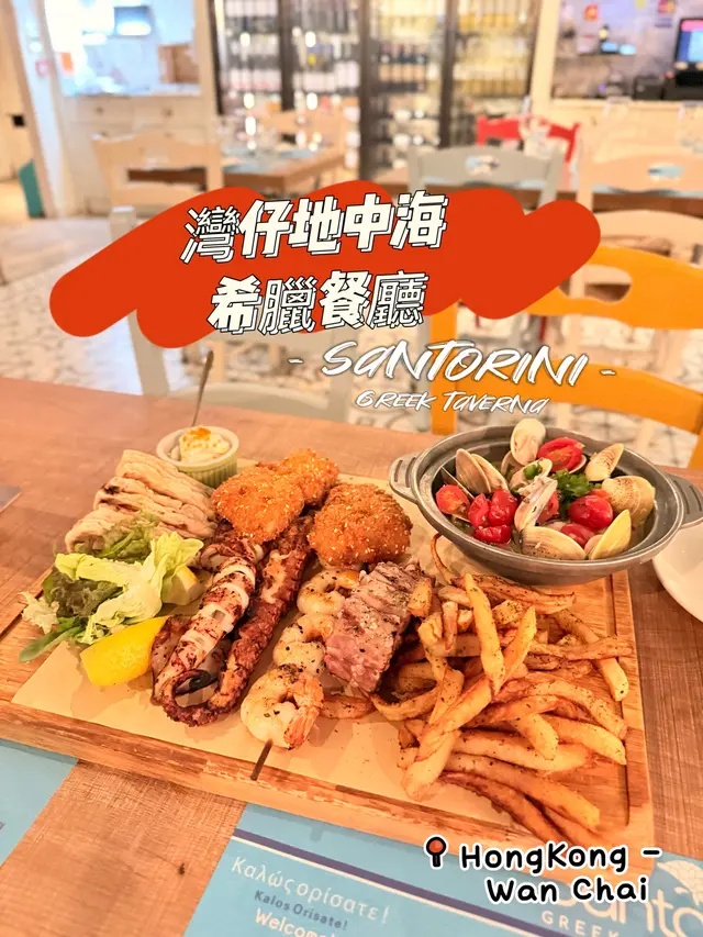 Santorini Greek Taverna (灣仔) 網上訂座享特別優惠兼賺Rice Dollars 網址: https://s.openrice.com/QrbS0W7G700 地址: 香港灣仔皇后大道東202號QRE Plaza 5樓 電話: +852 28878700