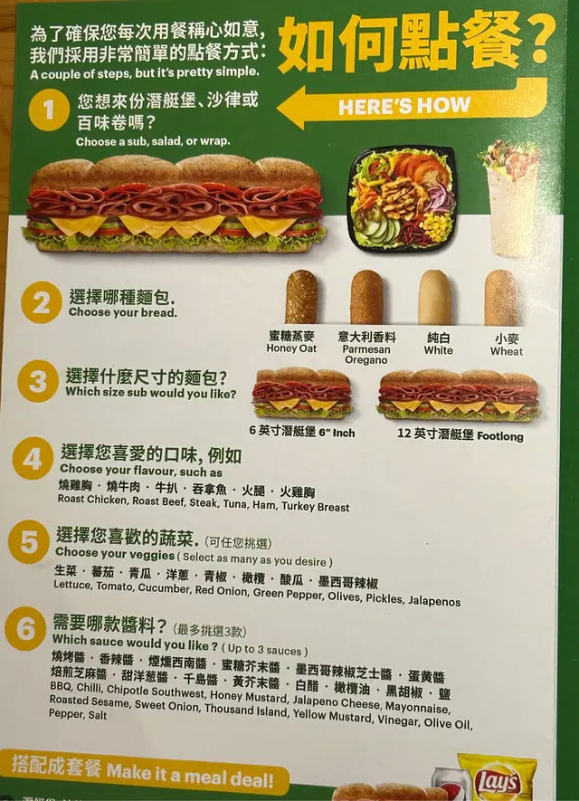 SUBWAY (大埔) 網址: https://s.openrice.com/QrbS0d1iC00 地址: 香港大埔港鐵大埔墟站TAP 22號舖 電話: +852 97989901