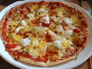 同以往食到嘅Pizza吾同Pizza面鋪滿超多哂材料如洋蔥,烤雞肉,蕃茄仔鬆軟中帶點煙韌嘅批底配上大量芝士同蕃茄醬多種層次感,口感豐富