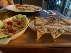之前有嚟過呢間餐廳下面食印度菜,留意到原來樓上有土耳其菜食,又心思思想試下,所以就返咗嚟啦!今次店員安排我地到樓上用餐,一入門口右手邊嘅樓梯就有好靚嘅土耳其燈!上到樓上見到嘅土耳燈更加靚,而且有好多靚畫即使落樓梯都可以欣賞到靚畫餐廳嘅裝潢好有格調,木牆身再加黃色燈令成個氣氛好浪漫~其實今次算係第二次食土耳其菜啦,之前食過一次Kebab所以覺得幾得意。飲品嚟講係同樓下一樣Menu的🌙Turkish Chicken Wings $78雞翼燒得好香,一上枱一陣香味飄來,同埋勁大隻碟再加靚擺盤,成件事勁認真咁,但其實係平時食過嘅燒翼~餐牌上寫有土耳其醬,不過我就唔係太識分隻味,但個雞翼係高質的🌙Chicken Zahter 10” $118兩個女仔嚟呢個Size係絕對食唔曬!同埋呢個Pizza好味在佢焗到個Pizza好軟!我連Pizza都係鐘意食軟綿綿嘅質地,同埋食到中間個質地唔知點搞超勁似食辣韓國菜🤣因為有超勁多嘅芝士加口感勁豐富!不過最尾個Pizza我地淨係食得落一半....最尾叫咗朋友打包返,最神奇係個Pizza返叮完之後個評價都係好食!係令你一試想再返轉頭嘅Pizza😋😋😋如果可以再出細d嘅Pizza就好啦!…查看更多
