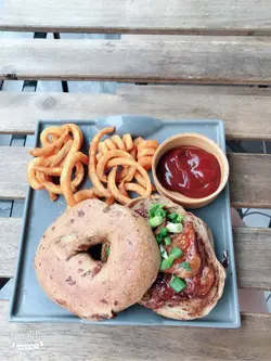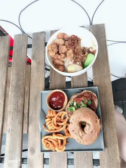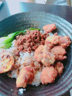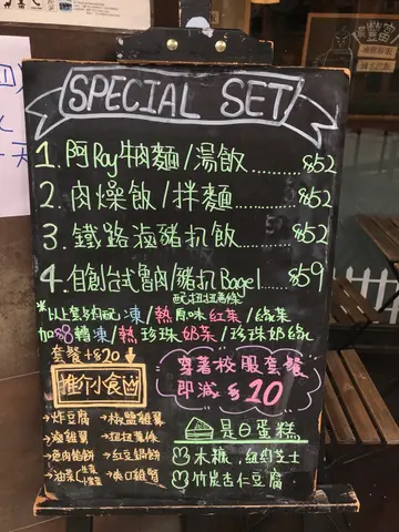 已經尼過呢間隱世台灣餐廳幾次,位置隱藏於民居裡面,唔係住呢頭附近都要花少少時間搵吓。餐廳坐位分左室內室外既,加埋大概20個位左右,唔太多。室外可以比大家帶埋小動物尼食野,都幾好既。之前幾次我都係尼食飯既,不過今日早左少少食唔落,所以叫左芝士煙肉BAGEL(藍莓味)BAGEL 好韌,好難切之餘用牙都撕左好耐。藍莓味其實淨係D JAM,甜甜地同芝士煙肉餡都幾唔match男朋友點左鹽酥雞肉燥飯,鹽酥雞份量多,調味落得岩岩好唔會過鹹,肉燥唔會太油,撈飯好正。抹茶珍珠奶綠,珍珠夠煙韌,可惜抹茶味比較淡,奶味比較多。下次都係食返主食穩陣D。…查看更多