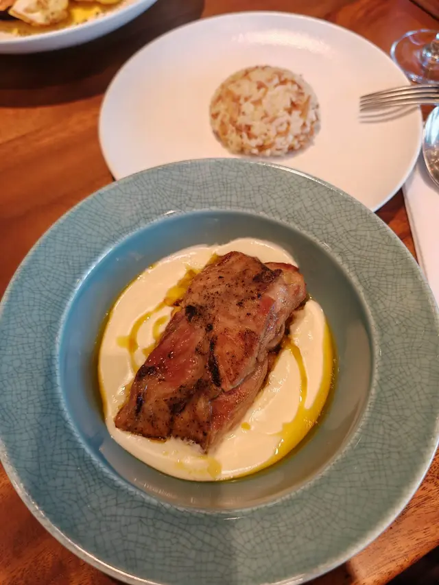 I went for lunch there for the first time. The lunch set, which used to be priced higher, is now more affordable, starting at $148.I chose the hamachi appetizer and grilled eggplant as my main dish. The meal started with a hot cauliflower soup, which was delicious. The hamachi portion was quite small, so I found it a bit unsatisfying, but it was fresh and had no fishy taste. The Greek yogurt sauce on the grilled eggplant was light and refreshing.You can add coffee or tea for an additional $18, and dessert is available for $38.Overall, it was a fairly satisfying meal.One downside is that the set does not include rice or bread, so I hope they improve that.…查看更多