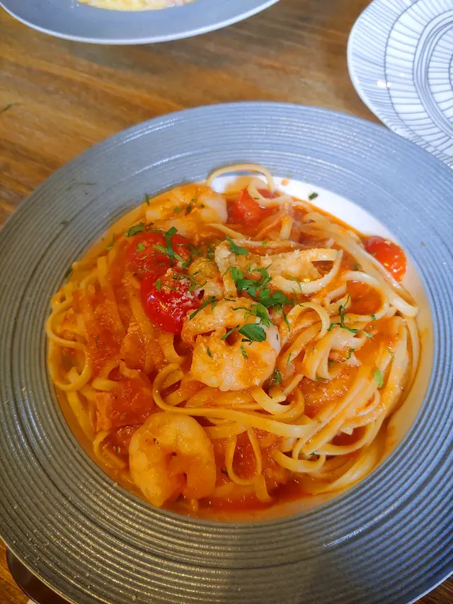 意式香草番茄汁鮮蝦煙肉扁意粉