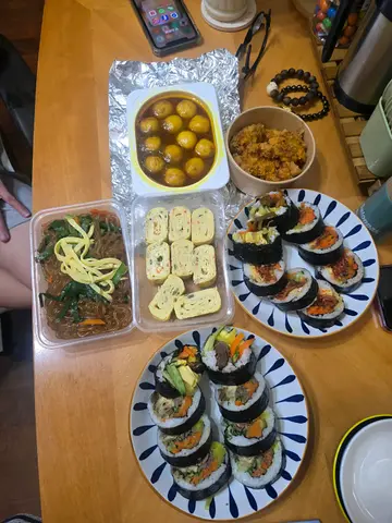 呢間小店由兩位韓國姨姨主理正宗韓國味道,佢哋淨係識少少廣東話🤗平時都成日幫襯買佢哋嘅Kimchi同炒粉絲因為味道好唔錯,Kimchi辣度剛好炒粉絲彈牙,份量足今次經過就買咗紫菜飯卷試試飯卷有幾款味揀: 泡菜/牛肉/豬肉/芝士/吞拿魚我哋買咗吞拿魚味🐟飯卷非常聚手,切開大約有8舊,好足料入面包住咗紅蘿蔔絲,醃蘿蔔絲,青瓜絲當然仲有吞拿魚啦😌總結💭💭一條飯卷只係$50-$55,用嚟當一餐絕對夠飽CP值高,會繼續支持韓國姨姨小店🇰🇷