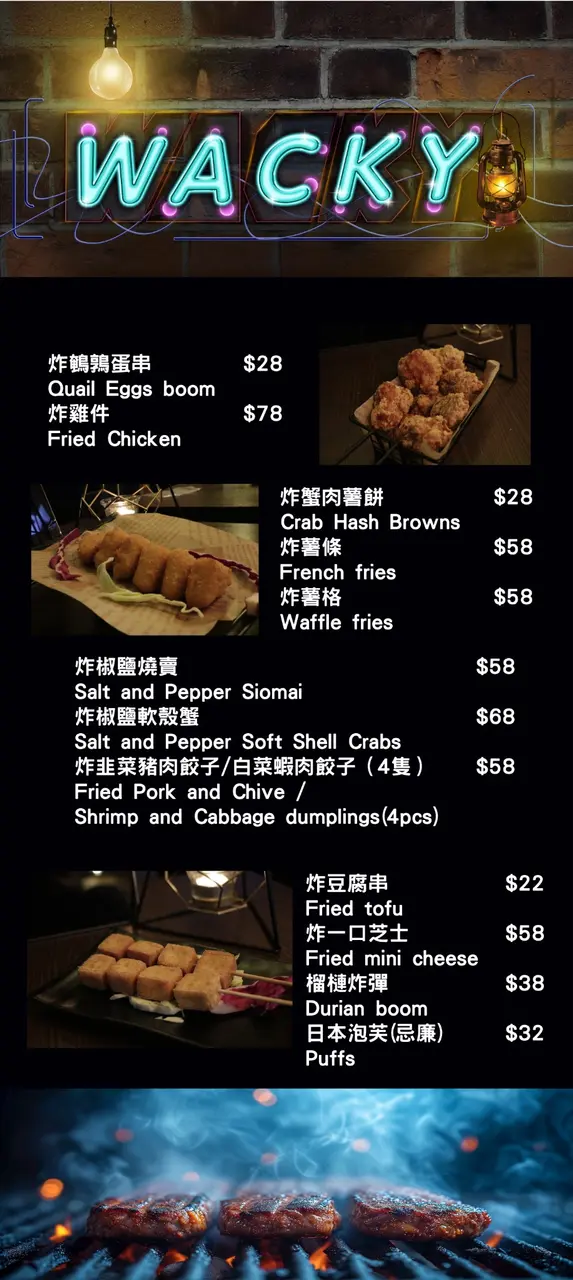 Wacky Bar (銅鑼灣) 網址: https://s.openrice.com/QrbS0U1iD00 地址: 香港銅鑼灣耀華街18號地舖 電話: +852 55877692