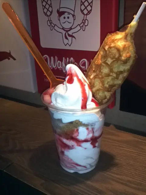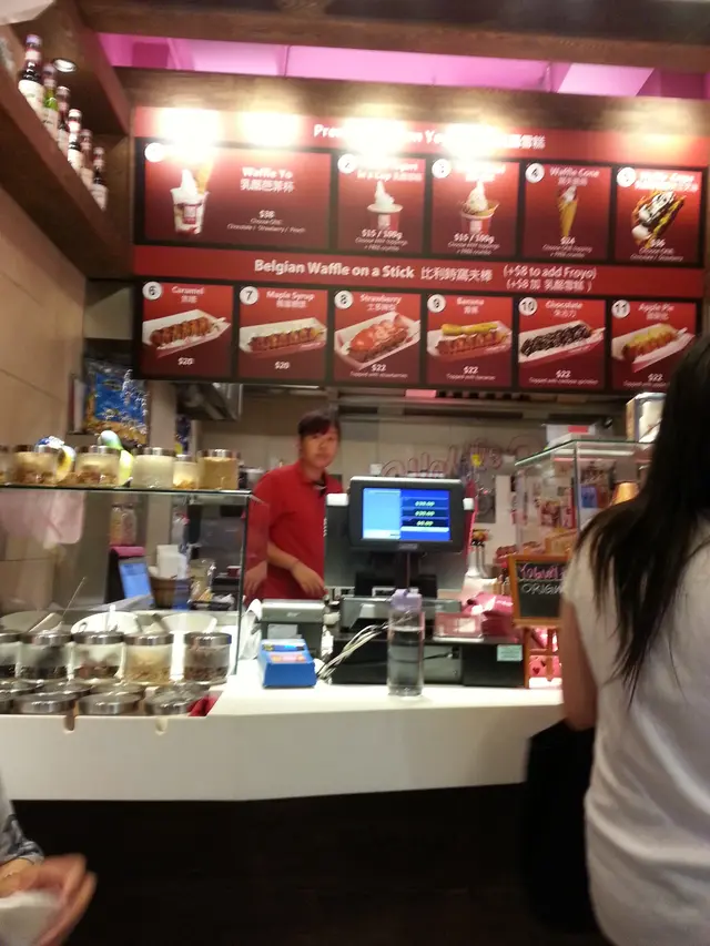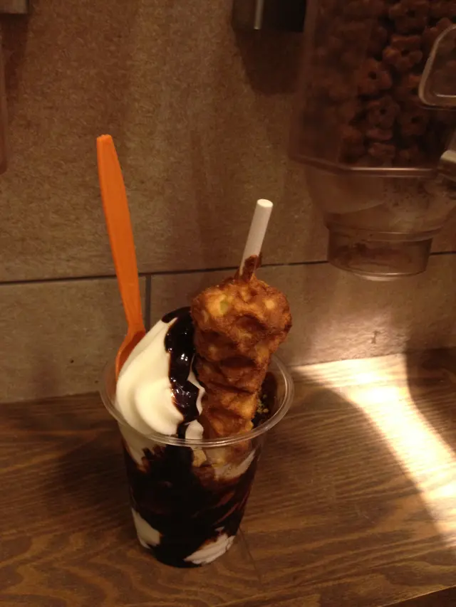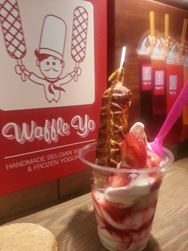 因為有一張團購優惠券,$15當$30用,今天去完灣仔書展,就乘電車過來用掉這張券。早已看過食評,很多都推介Waffle Yo(即杯裝Yogurt+條裝Waffle),於是不用多想,便要了一杯Waffle Yo。Waffle Yo (原價$38):一大杯的乳酪,配上士多啤梨汁及少量士多啤梨粒,中間有一層碎碎的crumbs,再加一大條的窩夫Stick。乳酪味道較淡,奶味不算濃,酸度不太高;質地頗挺身,不會溶得很快,口感不錯。士多啤梨醬份量適中,甜味與較淡的乳酪正好互相中和,因此吃起來不會太膩。窩夫條是新鮮即製,熱騰騰也有點蛋香味,外脆內軟,口感和味道不錯。扣除團購優惠券,補$8。以優惠券價錢買這麼大杯的Yougurt連窩夫條,算是抵吃,但原價則太貴了。若日後再有團購優惠,會考慮再光顧。
