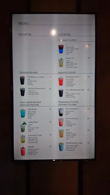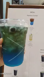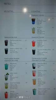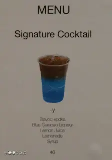 在十四款飲品中選取一款,幸好來之前已先選了點那款,否則選擇困難症定必發作。小的選擇了Signature Cocktail 中的 -y (Hyphen Y),由"Blavod Volka", "Blue Curacao Liqueur", "Lemon Juice", "Lemonade" & "Syrup"調製而成的。下層海藍,上層灰藍,賣相不錯,喝一口,甜味最搶,還帶點點苦味,是酒類產生的吧? 甜甜的很易入口,反而酒味不太濃烈,或許是因為這樣,加上在下喝得有點快,去到中途時,感覺到有點飄飄然了。雖然酒味一般,不過可以邊行邊走地,享用一杯賞心悅目的有或無酒精類飲品,再在街上吃點美食(掃街),也是一件樂事呢。…查看更多