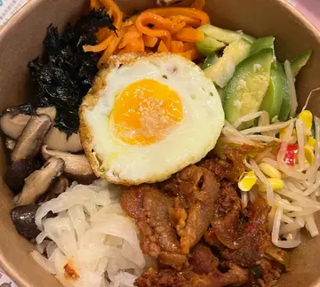 Lunch同事又帶我食新野,去左呢間買韓國便當/飯卷。Btw灣仔真係好多野食,返左咁耐都未試晒😂。🔅辣炒豬肉&5種配菜飯 ($80)🔸辣炒豬肉豬肉辣辣地夠晒惹味,送飯一流🥺。雖然底都有油,不過擺落飯到印一印食落又ok。🔸炒年糕年糕比較粗,唔算太煙韌、比較硬身,不過比豬肉更辣,好正!其實食年糕唔使食飯都夠飽🤣。🔸雞蛋🔸芝麻醬撈西蘭花加鵪鶉蛋西蘭花爽口,有芝麻醬就有啲味唔會好齋🖖🏻。🔸泡菜比較鹹,一般般。🔸蘿蔔唔夠入味、硬左少少🙈…🔸紅米飯夠晒健康,都有成碗飯咁多😳。💬整體都ok,選擇又多,等5min都唔使就拎得幾快手。雖然作為lunch偏貴少少,但偶然想食下韓國野都不失為好選擇。…查看更多