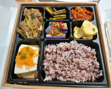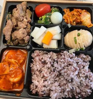 韓國菜外賣店散買略貴便當 $80 可以揀豬牛雞今次叫咗雞 個盒好豐富有六個餸卷蛋加咗蟹柳食落有層次感唔好俾茄子上面啲辣椒呃到食落唔辣又多汁好味👍👍個豆腐上有蘿蔔下有蔴醬感覺清新👏但酸菜泡菜重口味帶酸唔係人人啱食個肉未食已經冇乜期望韓式肉都係肉碎咁分唔到部位不過呢個肉味道適中同埋都林嘅個飯就咁睇起碼落咗紅米黑糯米幾健康嘅overall 食完都飽肚 (對男士黎講) …查看更多