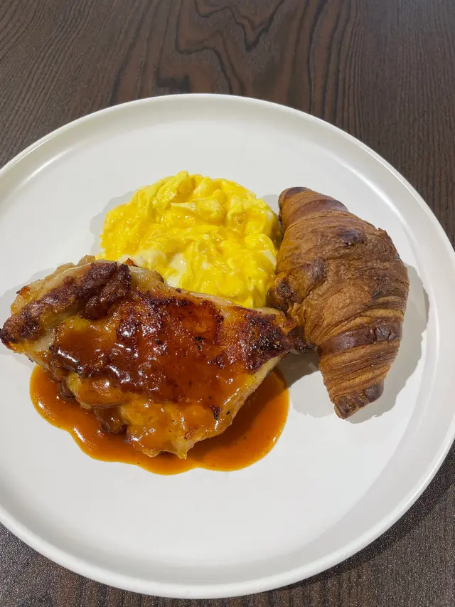 雞扒炒蛋配牛角包