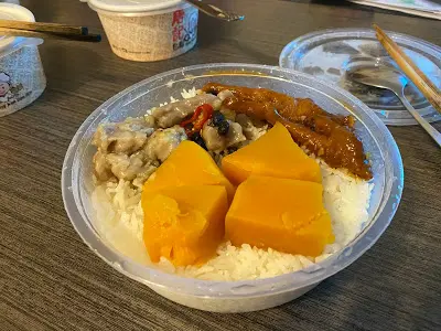 先說平時的《唐記》出品,就是一系列的蒸飯同點心啦。因為我來的是港鐵站內的分店,吃到的飯都是 prepacked 的。所以,就是廠出品,原膠盒上的鳳爪排骨飯。如果是街鋪,好多都是店內自製,客人要才入盒再加菜的。這些原膠盒的,就會伴上南瓜,令蒸飯多了幾分的甜味。此外,《唐記》的排骨同鳳爪的水準,我可以說,是拍得住好多酒樓既出品的。