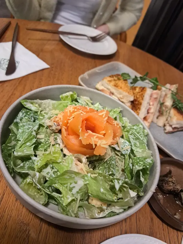 ・三文魚凱撒沙律|新鮮沙律菜配鹹香三文魚,味道平衡