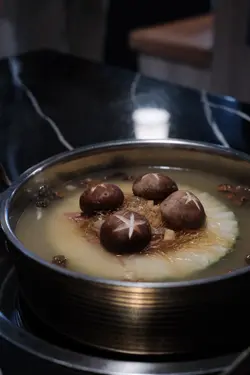 包含冬菇瑤柱金華火腿的湯底
