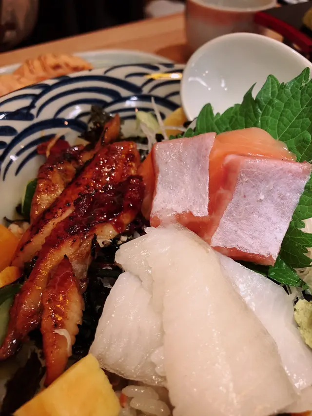 ⤠ 1. 刺身丼 (三文魚、鰻魚、左口魚裙邊)| ($78)