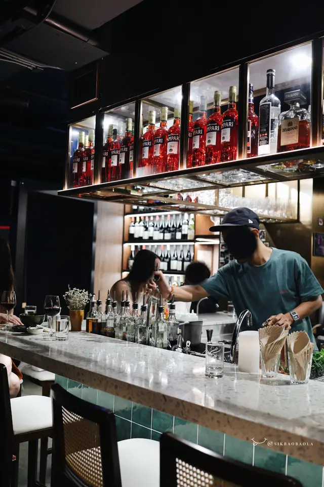空間不大,主要是圍繞著酒吧的吧檯座位、幾張高腳桌和少量普通餐桌