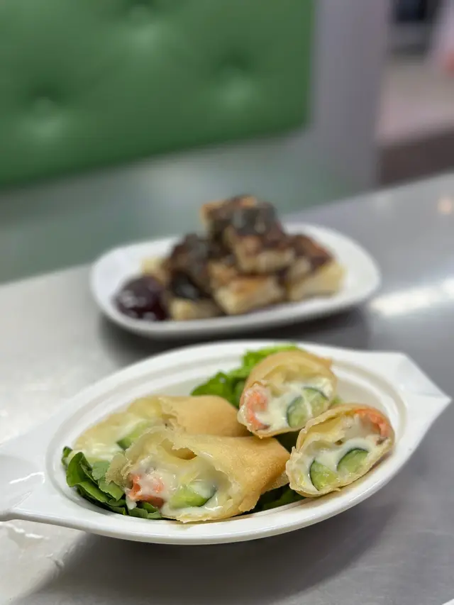入面有好香濃既芥末沙律醬,仲有熟嘅三文魚,春卷皮好脆,整體好惹味。