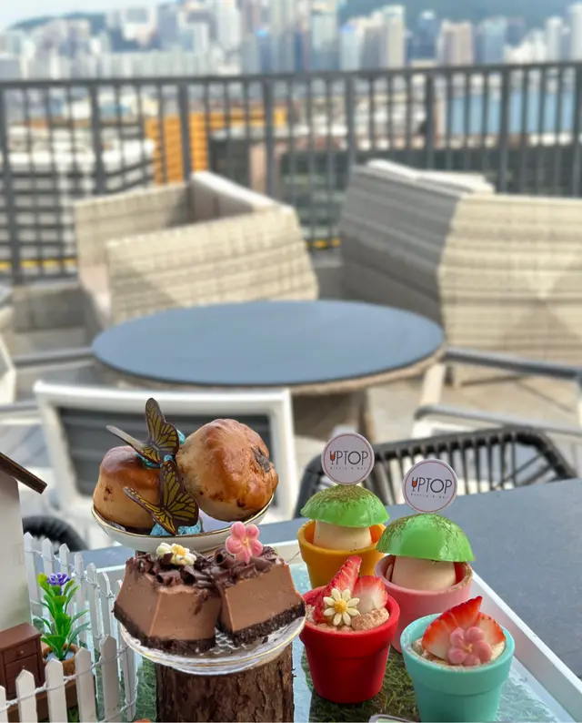 抹茶意大利奶凍、士多啤梨提拉米蘇、蝴蝶酥、朱古力芝士蛋糕、英式鬆餅配藍莓忌廉醬