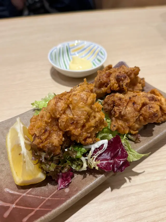 炸雞舊舊都好大舊,麵衣唔會太厚,食落口厚度適中。外面既麵衣脆口,好似薯片咁🤣入面既雞肉嫩身有肉汁,食落口啖啖肉,唔會有雪櫃味,點埋沙律醬就更加好食😋