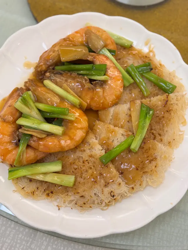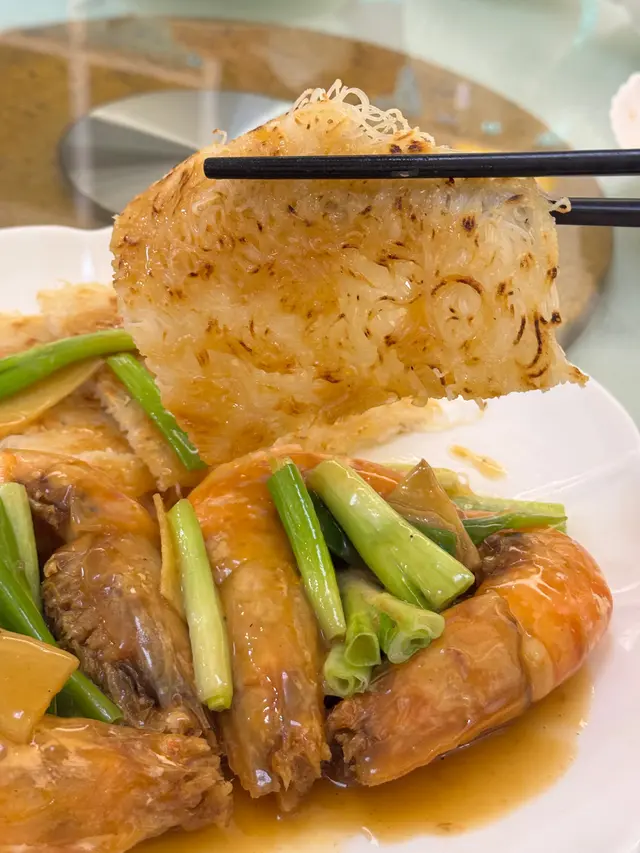 大蝦配家鄉煎米粉,順德的平民美食首位,煎米粉非常香口,加上大蝦沾汁更濃香,大蝦肉質爽彈多汁,蝦頭有膏令人愛不惜手