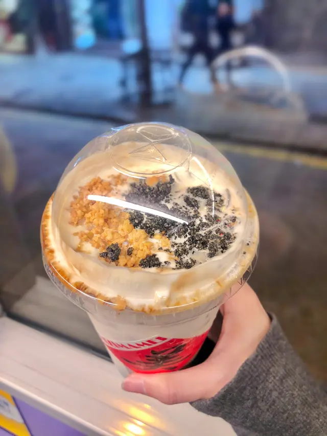 花芝黑糖珍珠鮮奶啖啖都有芝麻花生🥜 口感十足🤤 黑糖味亦都夠岀 叫咗少甜 甜度啱啱好!呢杯野真係太足料🧋飲完好飽😹 下次可以叫Small size都ok! 奶蓋蜜香烏龍茶正常發揮🍵 唔會太甜🤤唔想咁膩但又想飲奶蓋嘅可以一試!