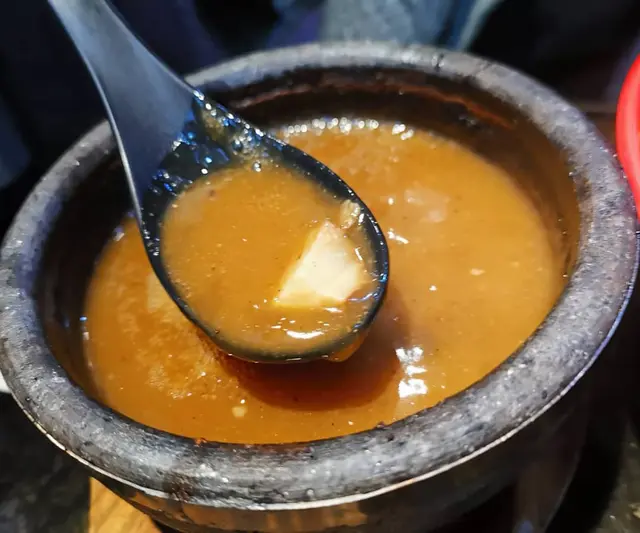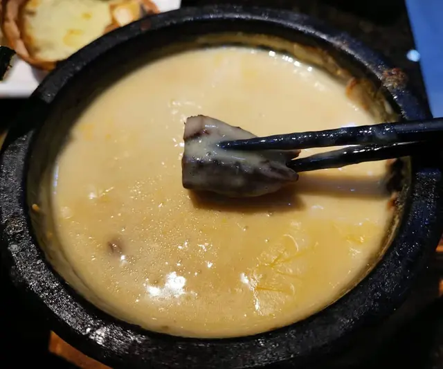 芝士湯底非常濃郁,感覺是忌廉芝士的味道,湯底內有少許豬肉。