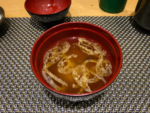面豉湯味道回甘,目的是為了品嚐即將出現既主菜前清一清口腔,好好感受食材。
