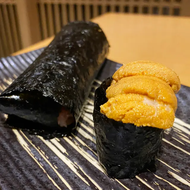 輪到壓軸出場既根室海膽壽司 同埋我最鍾意既 蔥吞拿魚腩手卷!!